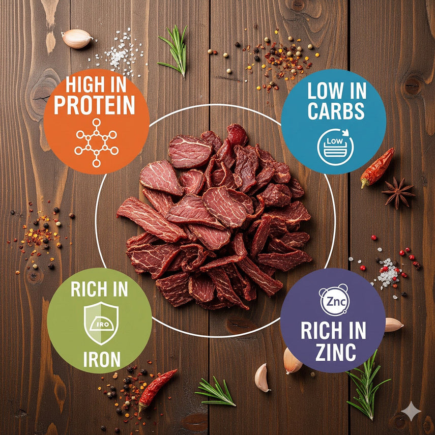 Packed with lean protein to support muscle growth, strength, and energy.Rich in essential minerals like iron, zinc, and B vitamins for stamina and recovery. Great for modern clean eating, paleo, and keto lifestyles. A time-tested survival food, sustaining warriors, travelers, and pioneers. Convenient & Shelf-Stable – Lightweight, portable, and perfect for on-the-go nutrition.
